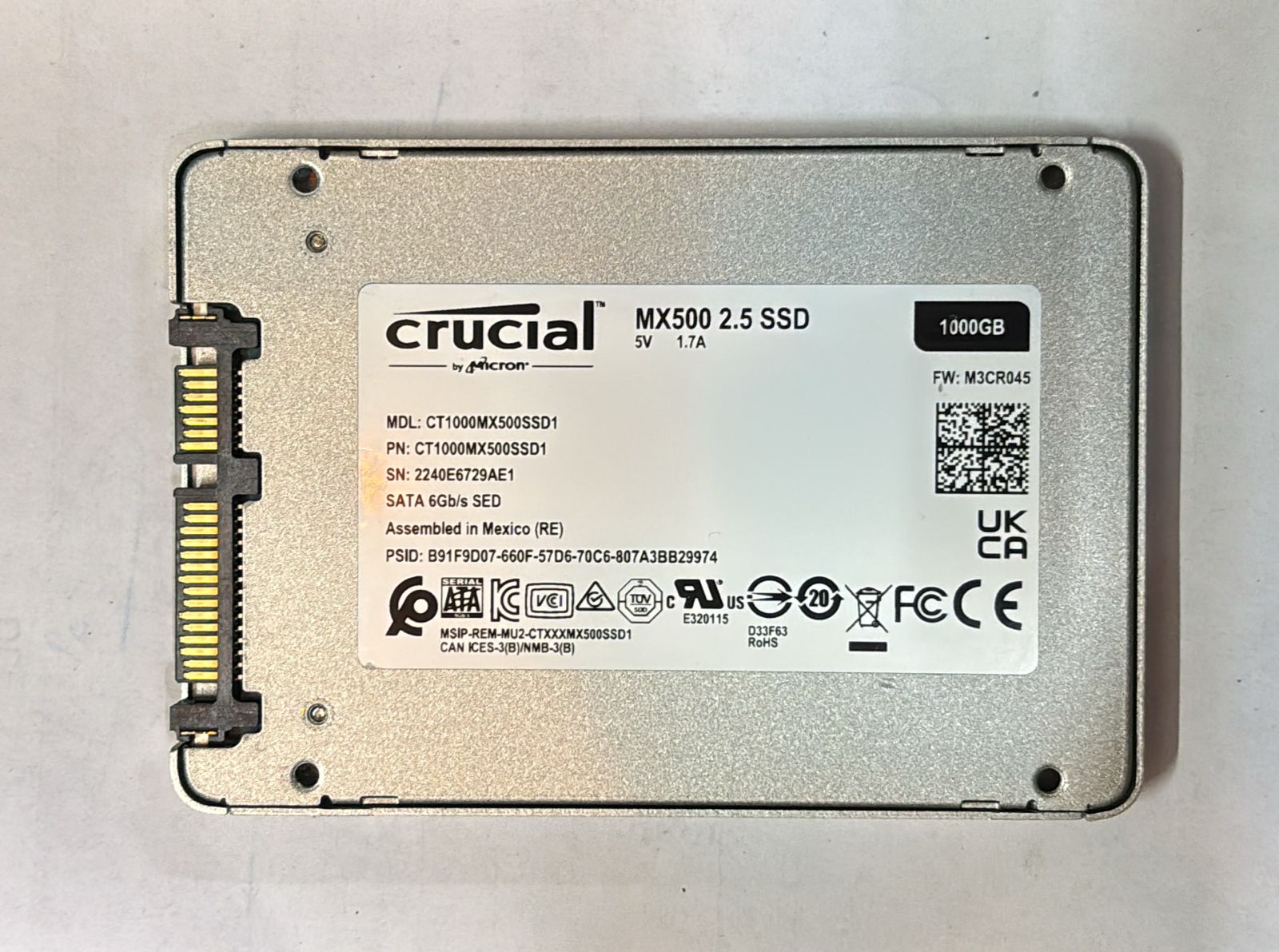 1TB SATA SSD (5 year warranty) crucial