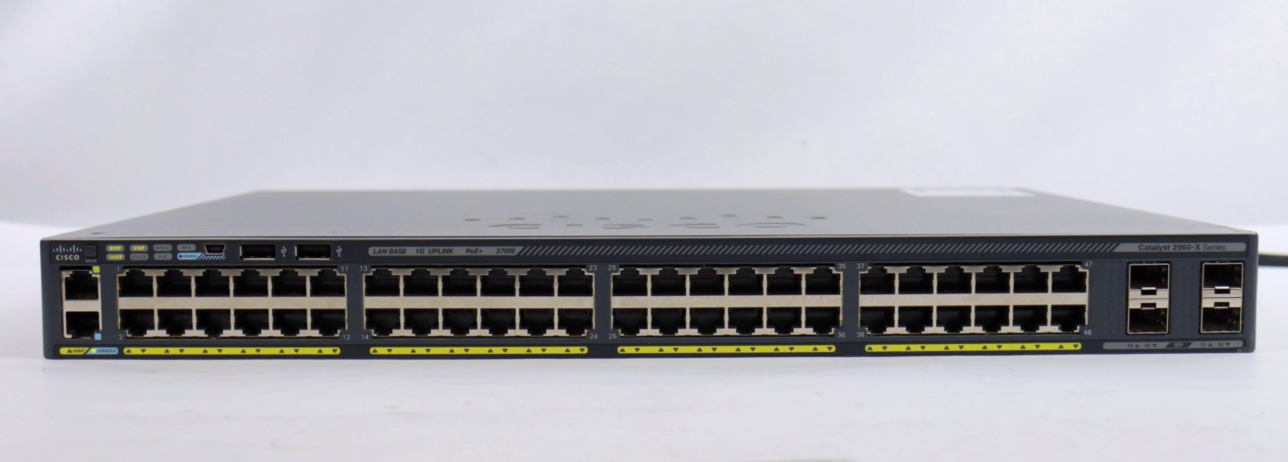 Cisco 2960X 48-port PoE switch for enterprise networking.